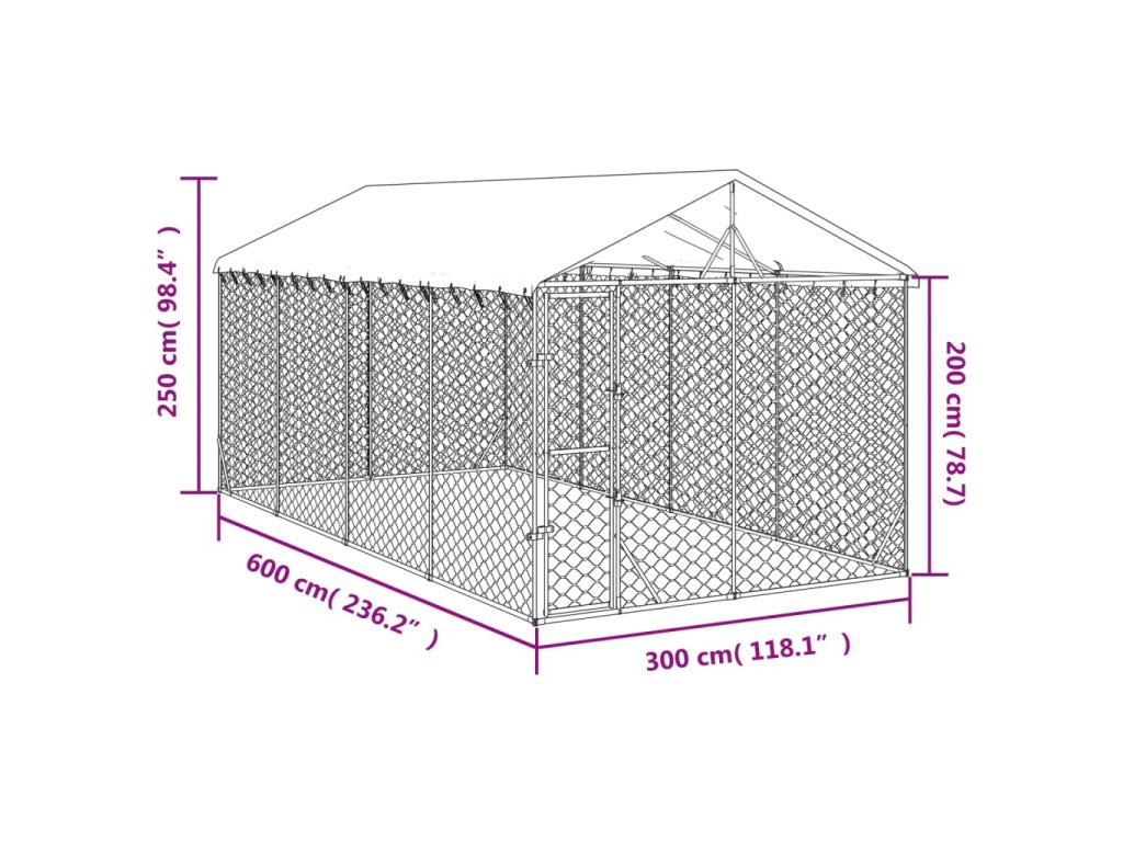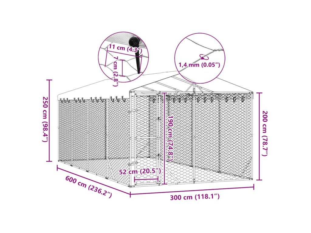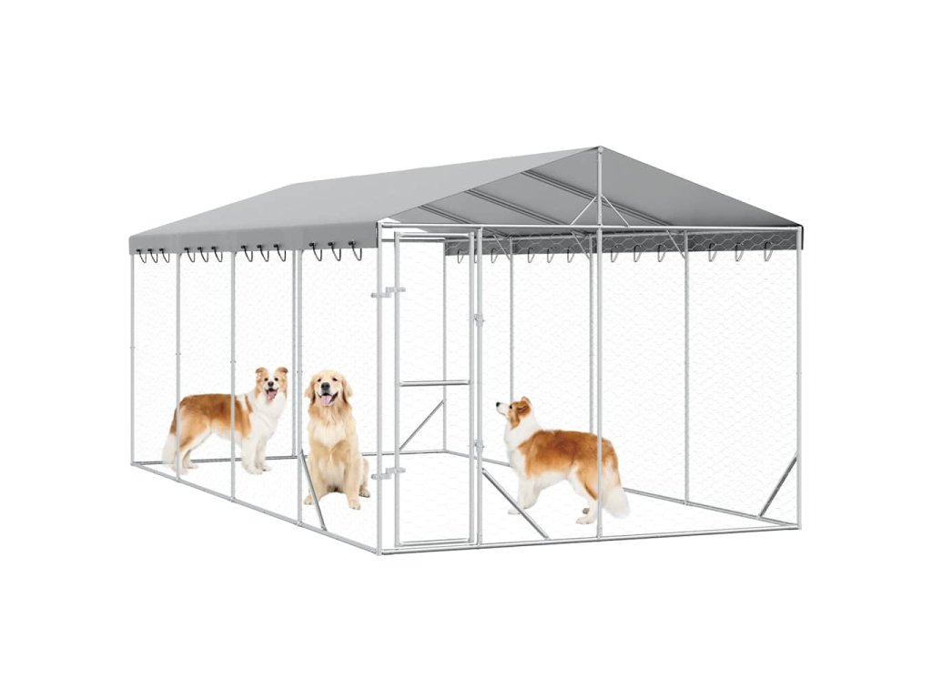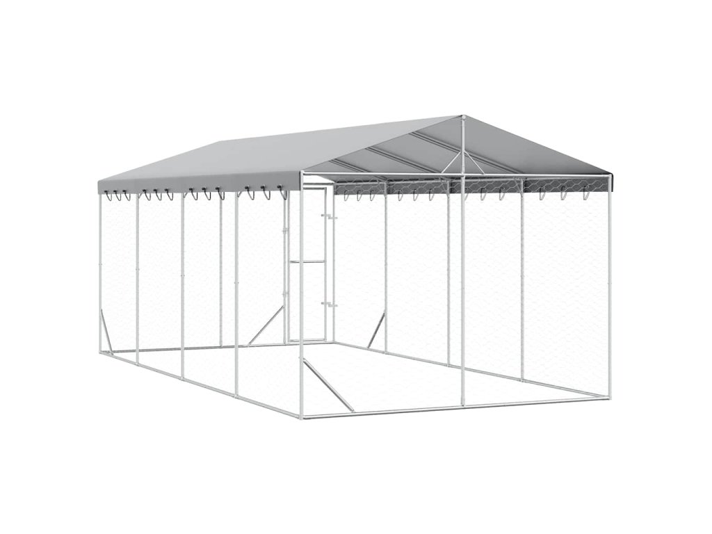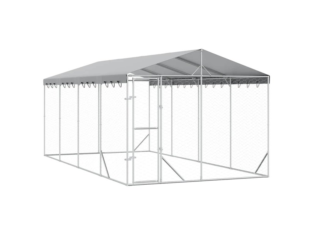 Venkovní psí kotec se střechou stříbrný 3 x 6 x 2,5 m ocel 3190488