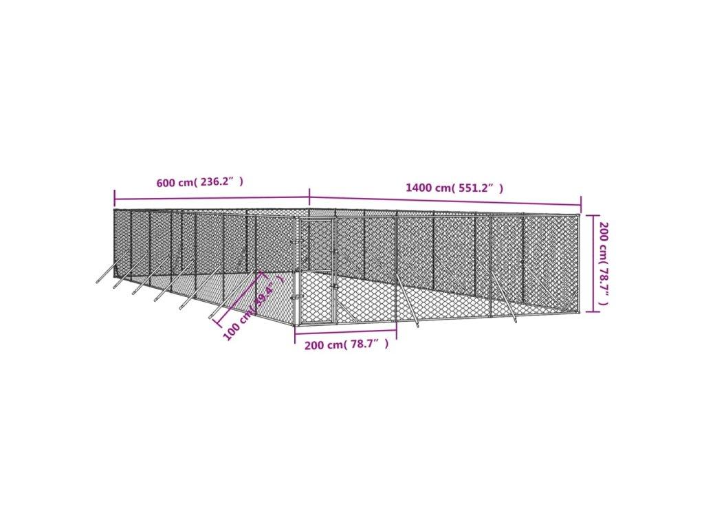 Venkovní psí kotec stříbrný 6 x 14 x 2 m pozinkovaná ocel 3190462