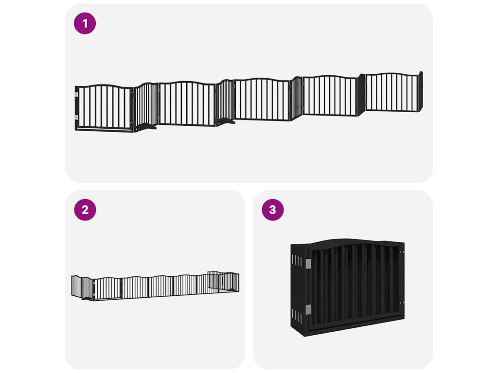 Zábrana pro psy s dvířky skládací 10 panelů černá 800 cm topol 3155627