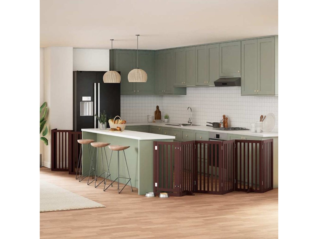 Zábrana pro psy s dvířky skládací 12 panelů hnědá 600 cm topol 3155663
