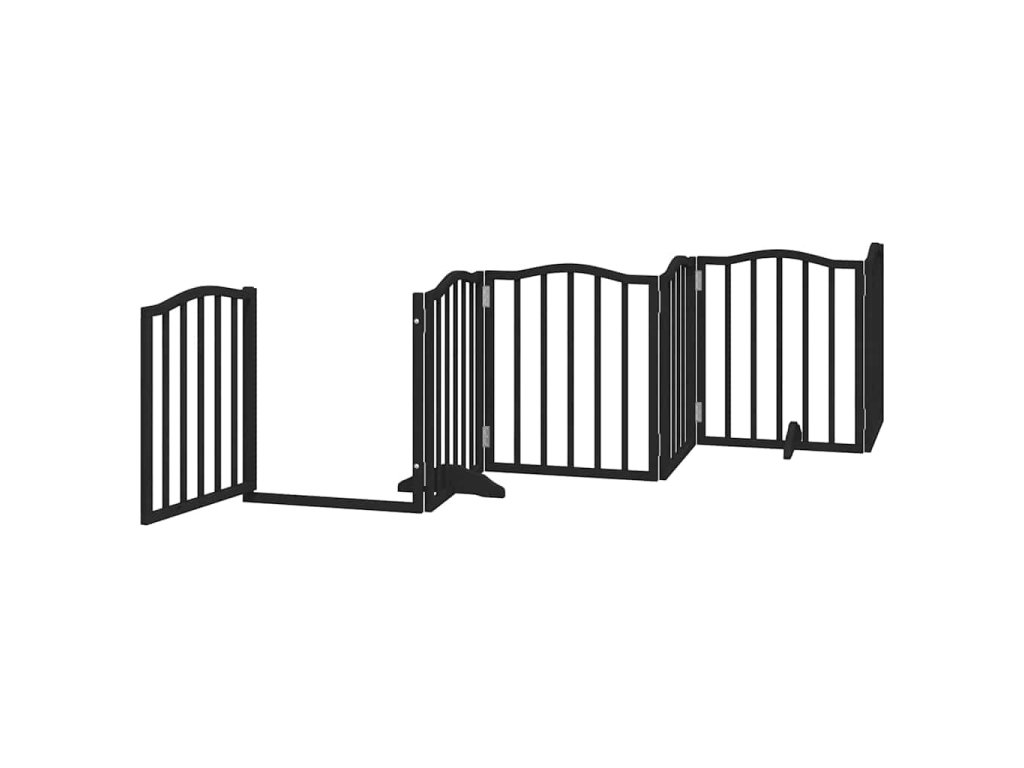 Zábrana pro psy s dvířky skládací 15 panelů černá 750 cm topol 3155599