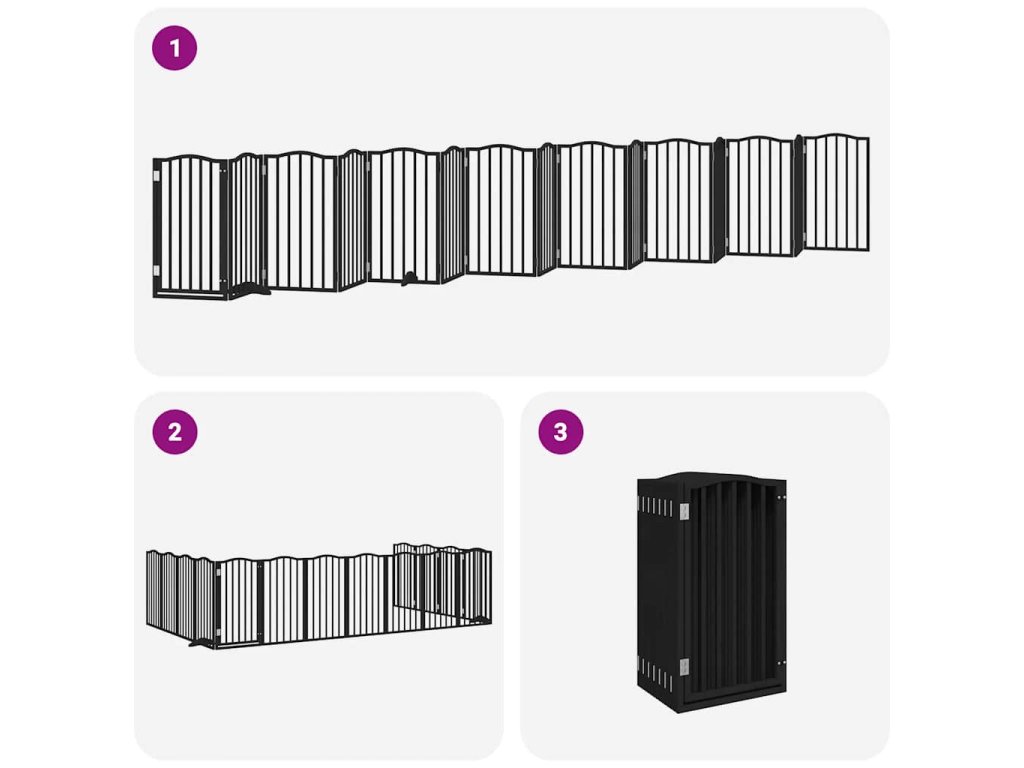 Zábrana pro psy s dvířky skládací 15 panelů černá 750 cm topol 3155602