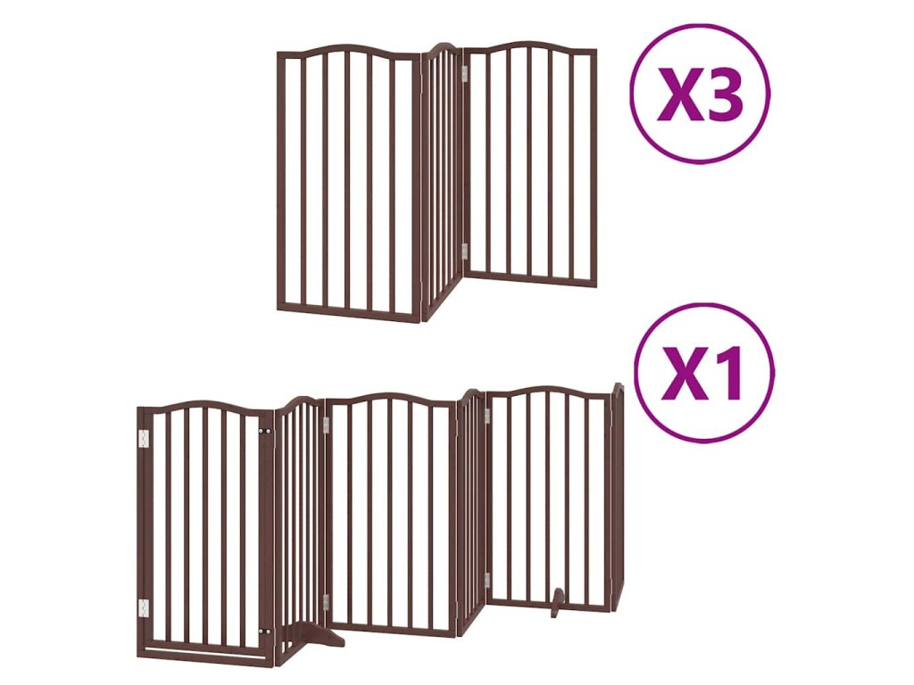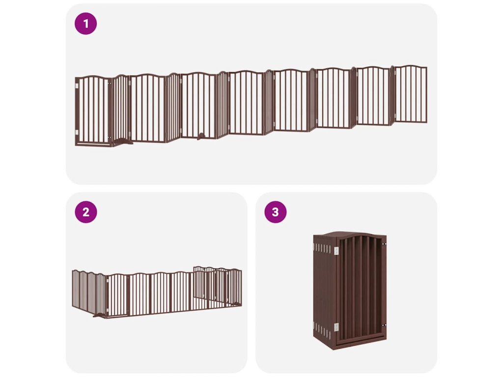 Zábrana pro psy s dvířky skládací 15 panelů hnědá 750 cm topol 3155608