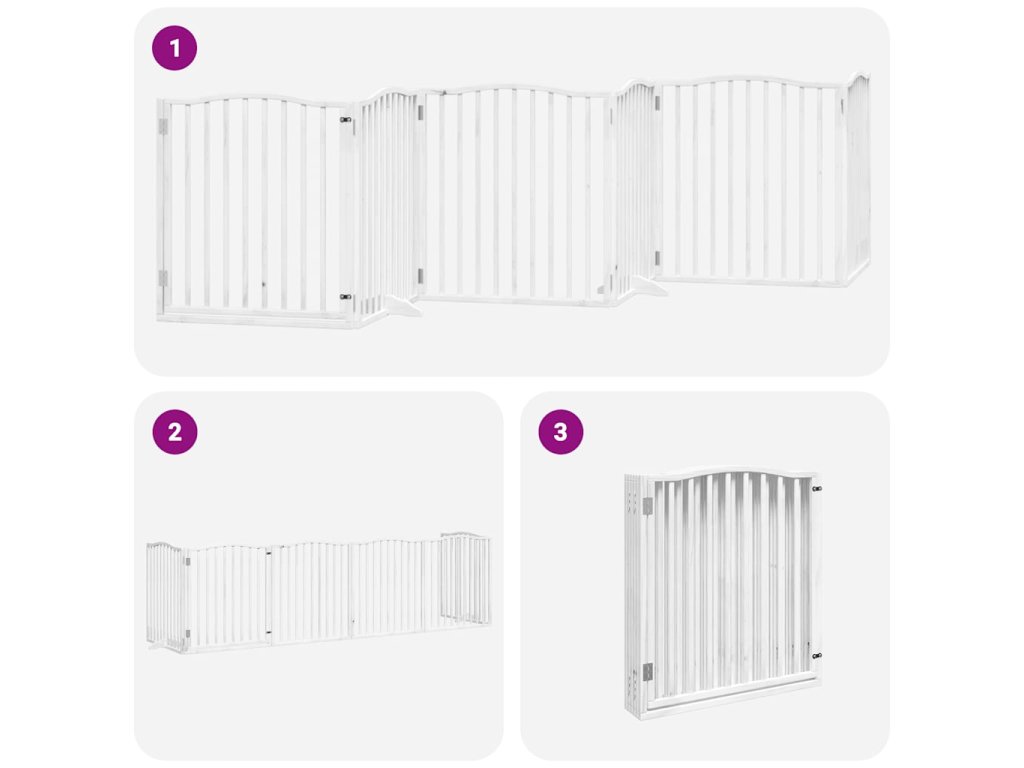 Zábrana pro psy s dvířky skládací 6 panelů bílá 480 cm topol 3155621