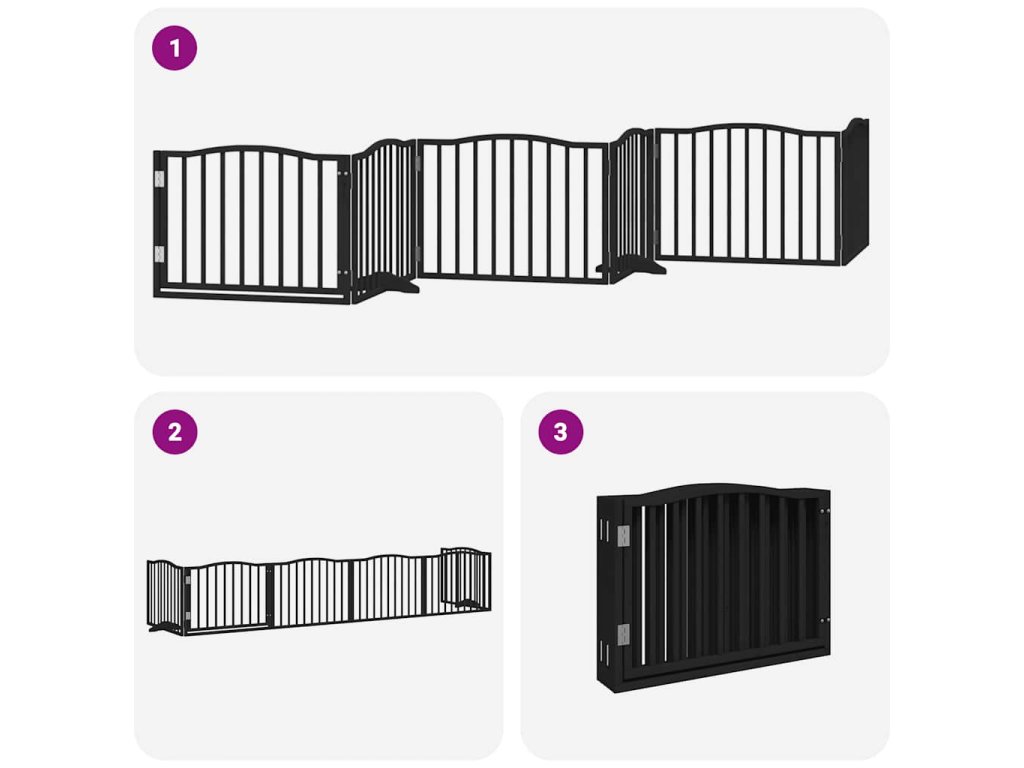 Zábrana pro psy s dvířky skládací 6 panelů černá 480 cm topol 3155625