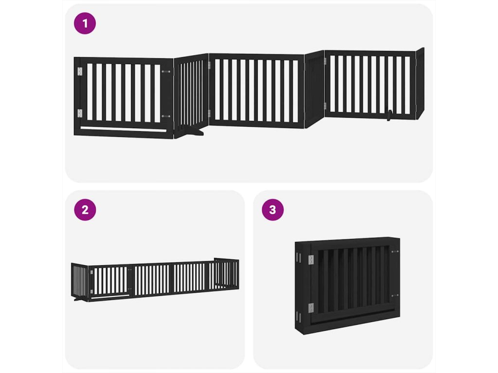 Zábrana pro psy s dvířky skládací 6 panelů černá 480 cm topol 3155681