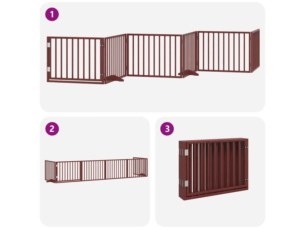 Zábrana pro psy s dvířky skládací 6 panelů hnědá 480 cm topol 3155577