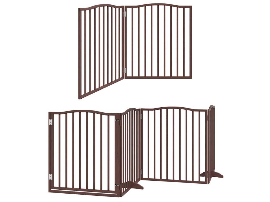Zábrana pro psy s dvířky skládací 8 panelů hnědá 640 cm topol 3155638