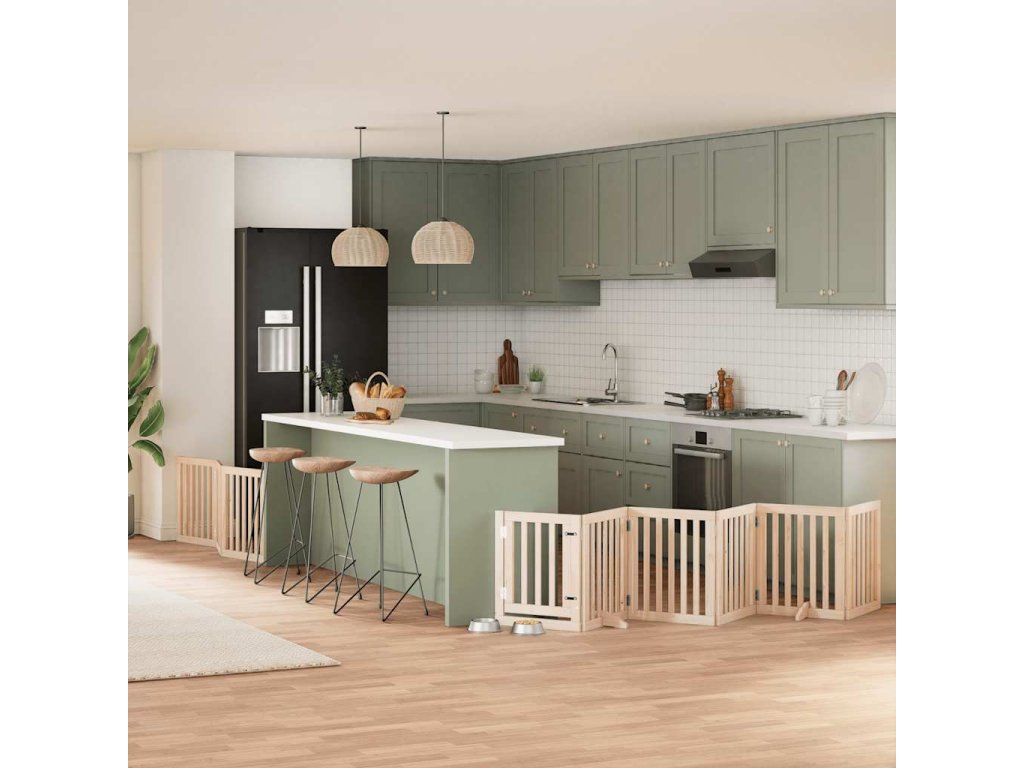 Zábrana pro psy s dvířky skládací 9 panelů 450 cm topol 3155641
