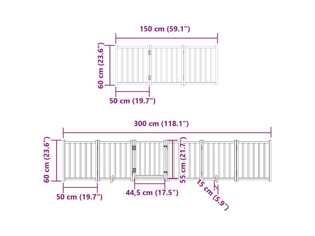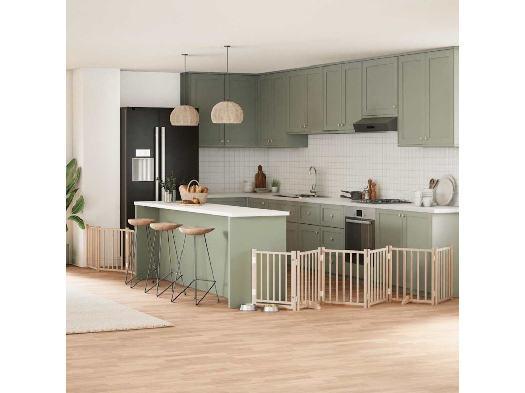 Zábrana pro psy s dvířky skládací 9 panelů 450 cm topol 3155697