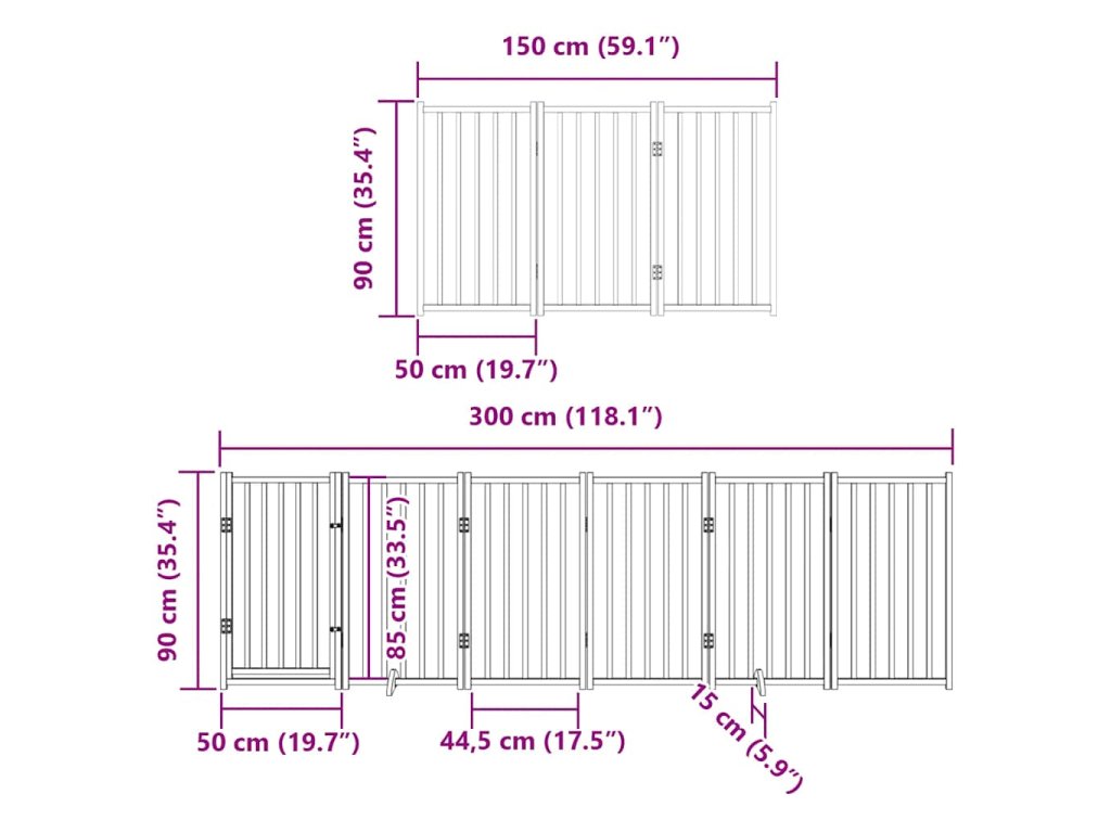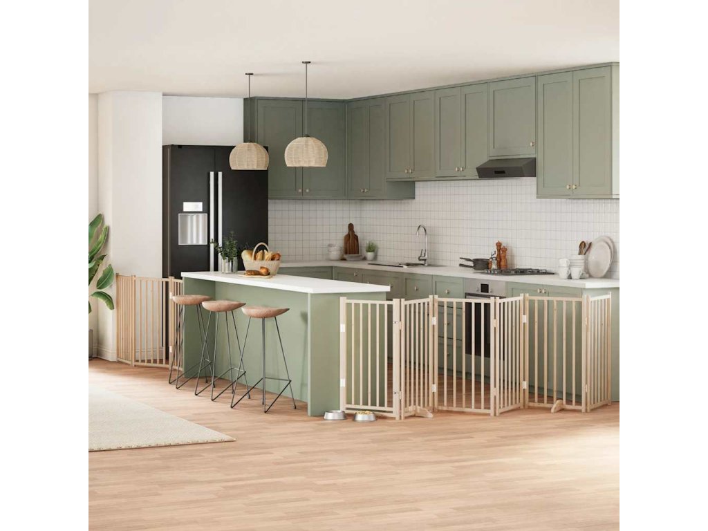Zábrana pro psy s dvířky skládací 9 panelů 450 cm topol 3155700