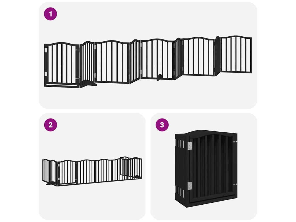 Zábrana pro psy s dvířky skládací 9 panelů černá 450 cm topol 3155597
