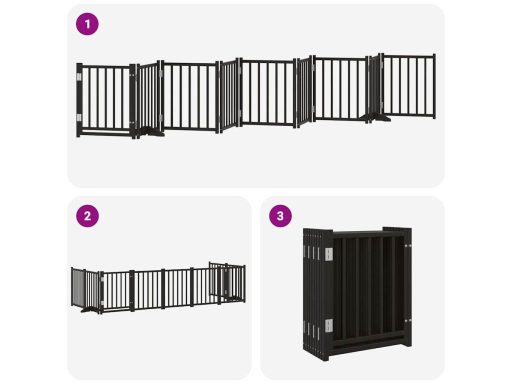 Zábrana pro psy s dvířky skládací 9 panelů černá 450 cm topol 3155709