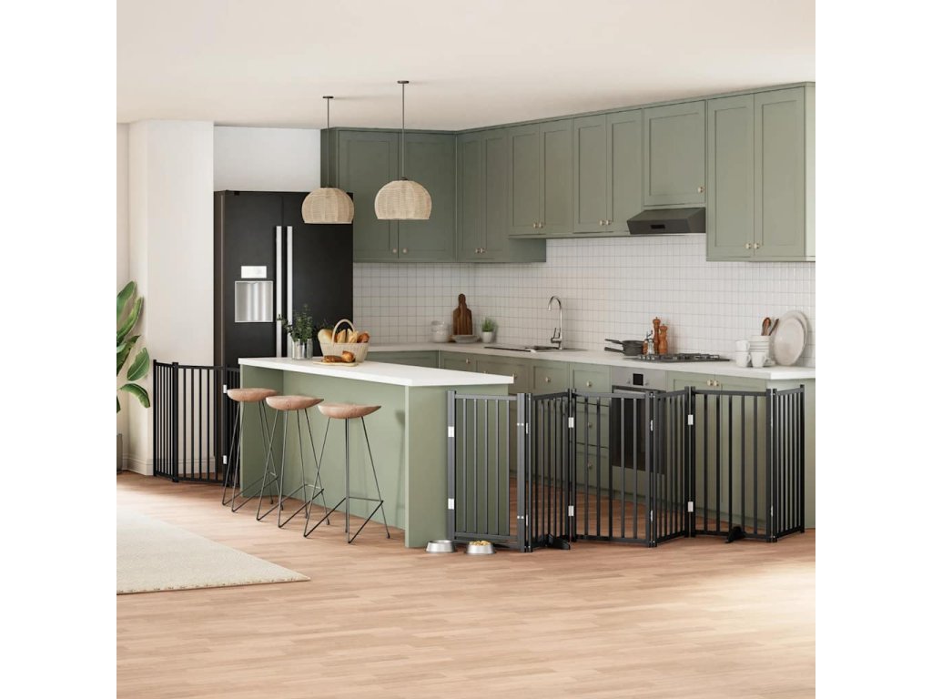 - Praktický design: Psí zábrana je vybavena dvěma pevnými nožičkami, které zajišťují stabilitu a umožňují snadné nastavení. Kromě toho obsahuje dveřní panel a je vybavena zámky, takže poskytuje větší bezpečnost i praktičnost pro vás i vaše mazlíčky.