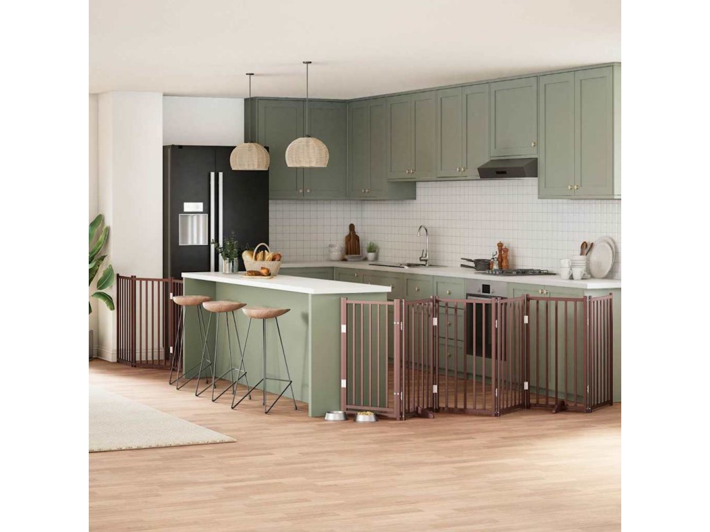 Zábrana pro psy s dvířky skládací 9 panelů hnědá 450 cm topol 3155718