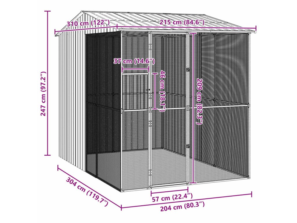 Ptačí klec Antracit 215 x 310 x 247 cm Pozinkovaná ocel 3325176