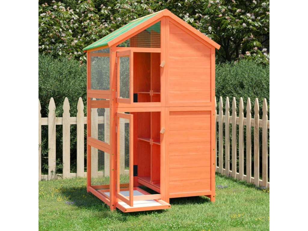 Ptačí voliéra hnědá 97 x 81 x 152 cm masivní borové dřevo 172258