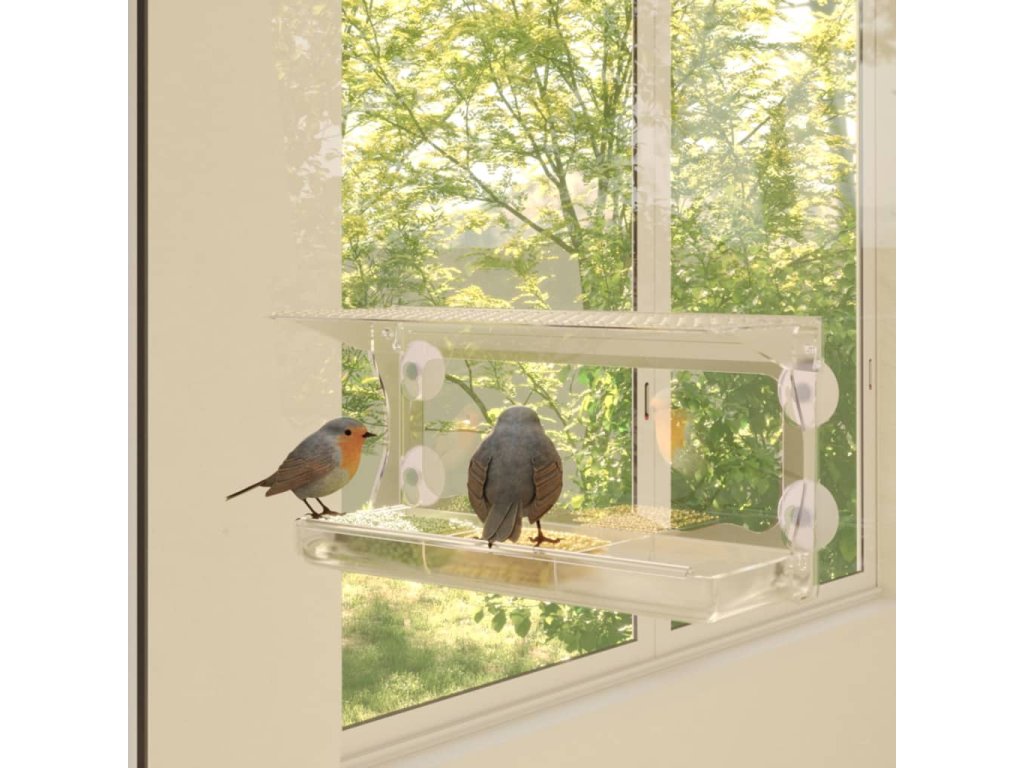 Okenní krmítka pro ptáky 2 ks akryl 30 x 12 x 15 cm 318304