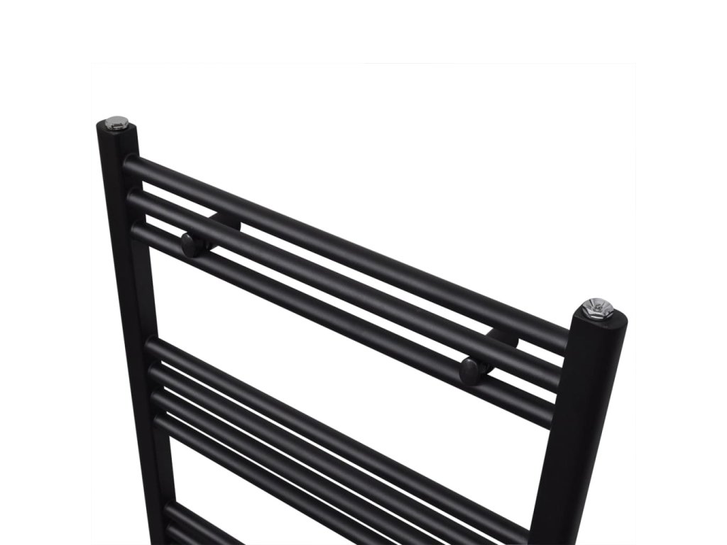Vzhledem k systému cirkulace horké vody, který nevyžaduje připojení k elektrické síti, budou vaše ručníky suché v mžiku. Žebříkový radiátor má 8 ocelových trubek o průměru 22 mm a je natřený černou barvou. Příčné trubky jsou extra silné, a vydávají tak velké množství tepla. Na horním i dolním konci je radiátor opatřen přípojkami na vodu pro optimální proudění vody.