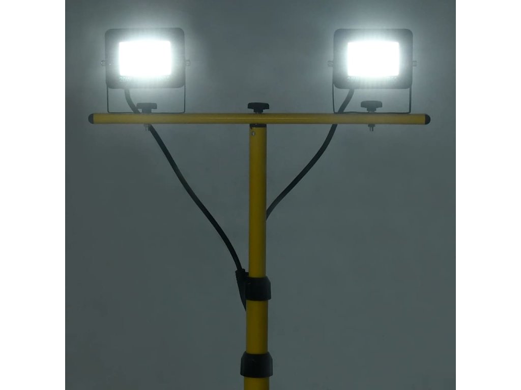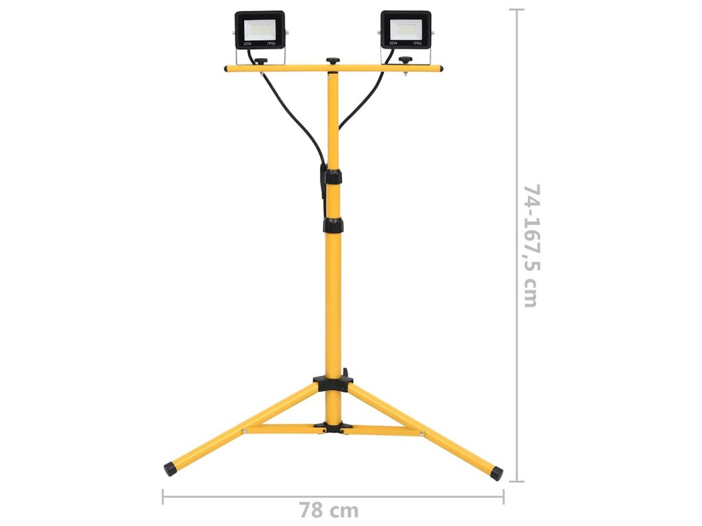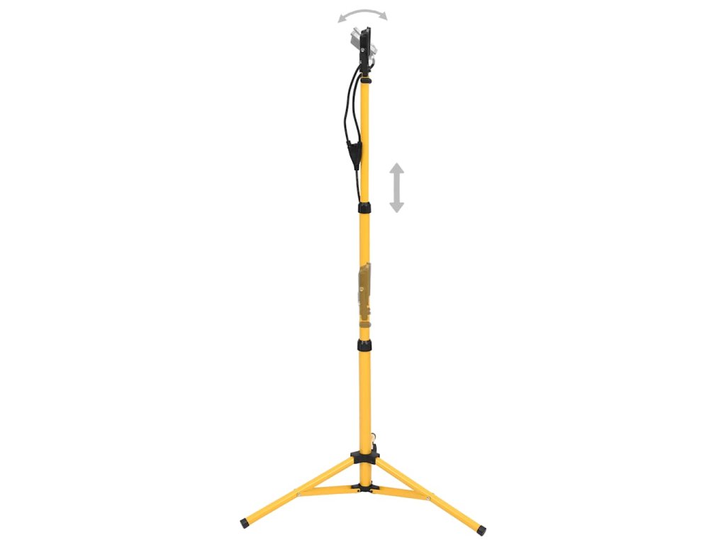 Pracovní světlo má hliníkové pouzdro a skleněný kryt, odvádí tedy dobře teplo a má nízkou hmotnost. Se světelným tokem 2 800 lm a úhlem vyzařování 120° zajišťuje dokonalé osvětlení. Reflektor navíc vyzařuje světlo o barevné teplotě 6 000 K, která zajišťuje optimální světelné podmínky v okolí vašeho domova. Pracovní světlo je podepřeno ocelovou trojnožkou, což mu dodává na robustnosti a stabilitě. Výšku si můžete nastavit podle vlastních preferencí. Vzhledem k pevně připojenému 3m napájecímu kabelu se zástrčkou je ideální lampu postavit do místnosti.