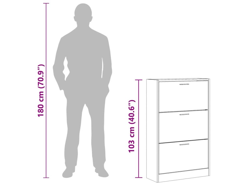 - Konstrukce vyklápěcí zásuvky: Díky vyklápěcím zásuvkám se tato skříňka na boty snadno otevírá a zavírá.