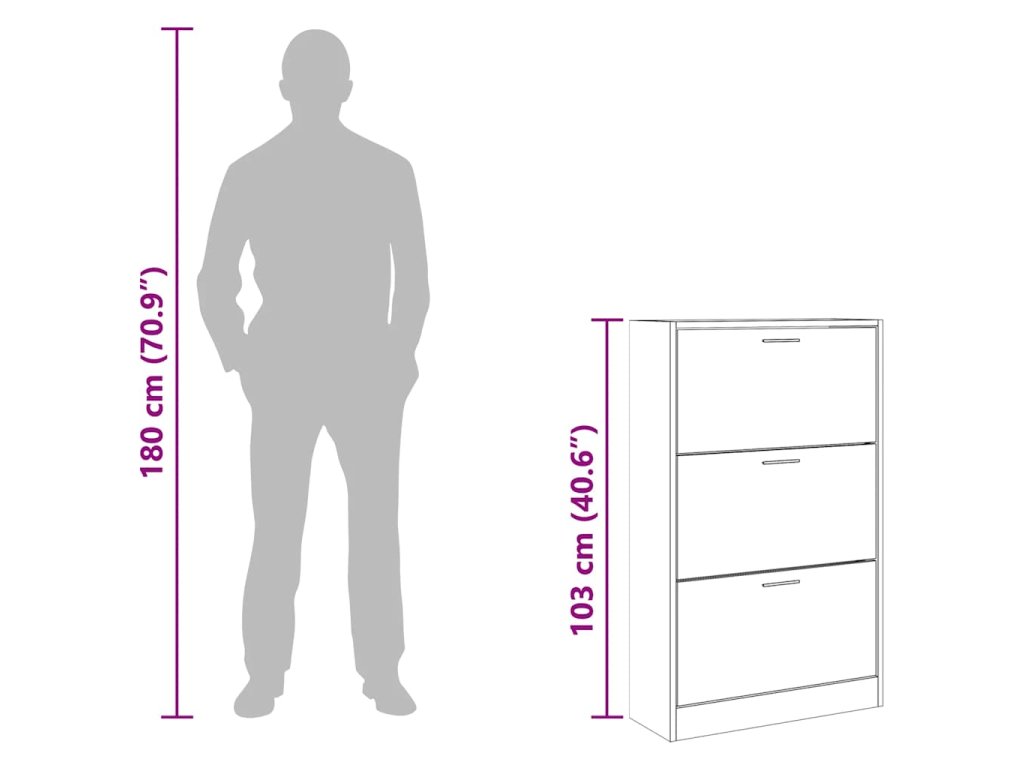 - Konstrukce vyklápěcí zásuvky: Díky vyklápěcím zásuvkám se tato skříňka na boty snadno otevírá a zavírá.