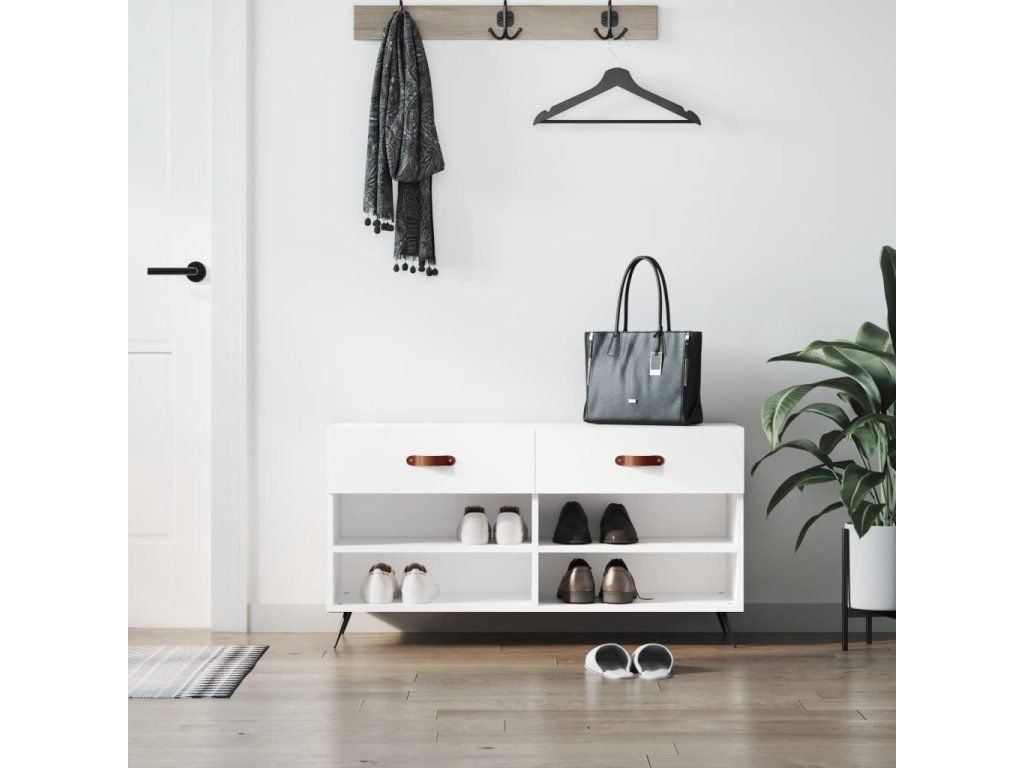 Botník bílý s vysokým leskem 102 x 35 x 55 cm kompozitní dřevo 829710