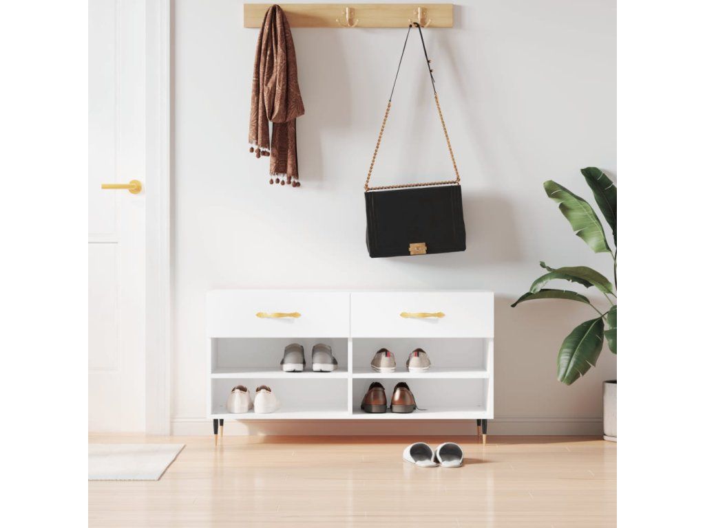Botník bílý s vysokým leskem 102 x 35 x 55 cm kompozitní dřevo 829718