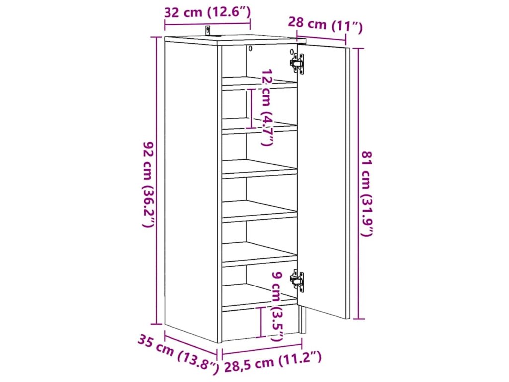Tento botník je odolný a robustní s dlouhou životnost. Jeho jednoduchý design snadno zapadne do vašeho stávajícího obytného prostoru. Regál na boty má 6 polic, které poskytují dostatek prostoru pro přehledné uložení bot. Dvířka, která lze otevřít vlevo nebo vpravo, chrání vaše boty před prachem a zároveň nebudou na očích. Navíc se snadno čistí vlhkým hadříkem.