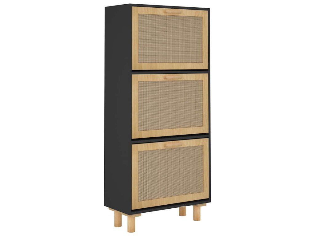 Botník černý 52 x 25 x 115 cm kompozitní dřevo a přírodní ratan 345649