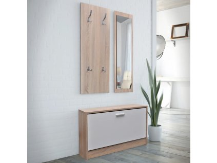 Dřevěná sestava do předsíně 3 v 1 dub a bílá 241246