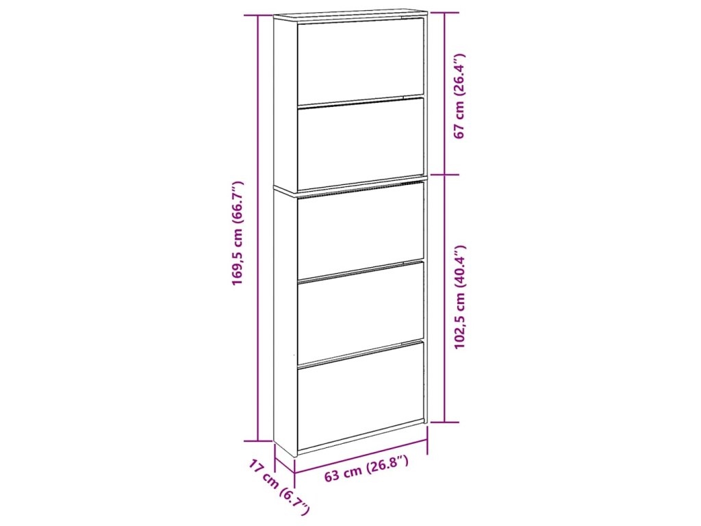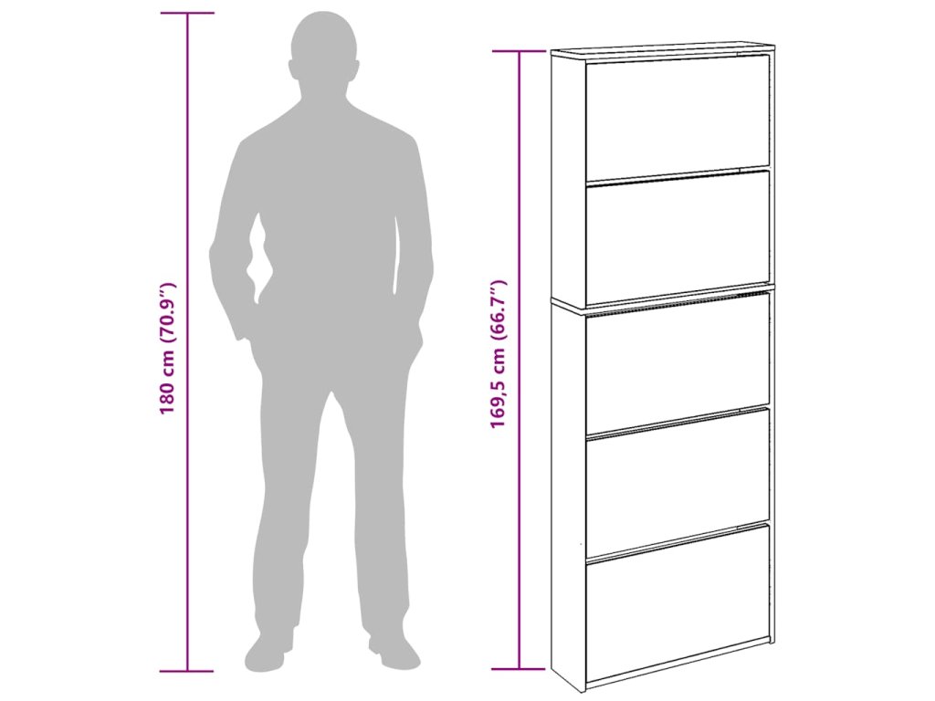 Tento zrcadlový botník má pět vyklápěcích přihrádek, z nichž každá pojme 3 až 4 páry obuvi. Botník se montuje přímo na stěnu. Tato pevná a odolná předsíňová skříňka je vyrobena z vysoce kvalitního materiálu a je velmi praktickým kusem nábytku, kde můžete úhledně a stylově ukládat své boty, aby nebyly poházené po bytě.