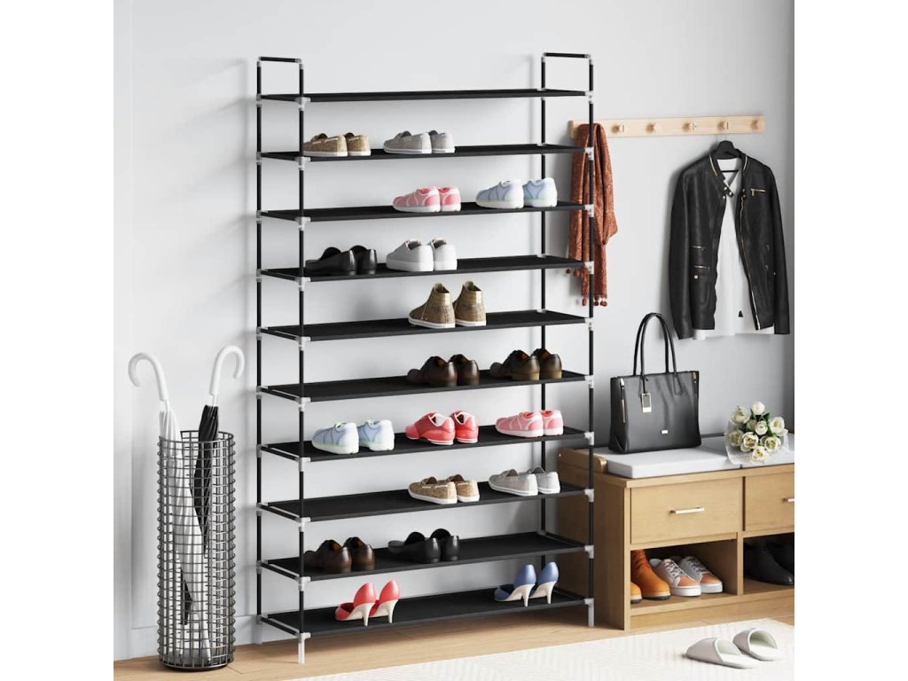 Botník s 10 policemi kov a netkaná textilie černý 245630