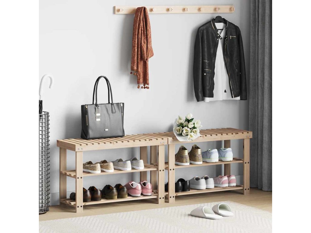 Botník s lavičkou 2 v 1 2 ks masivní dřevo 276040