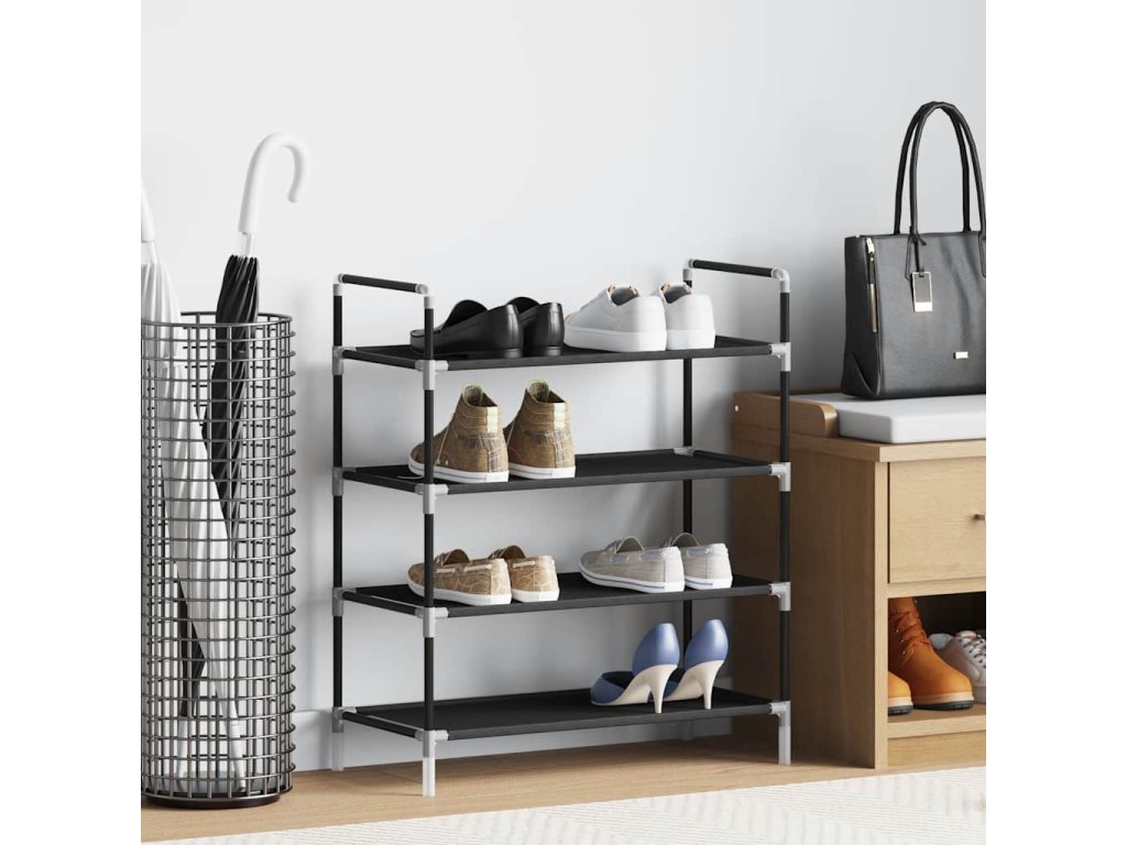 Botník se 4 policemi kov a netkaná textilie černý 245628