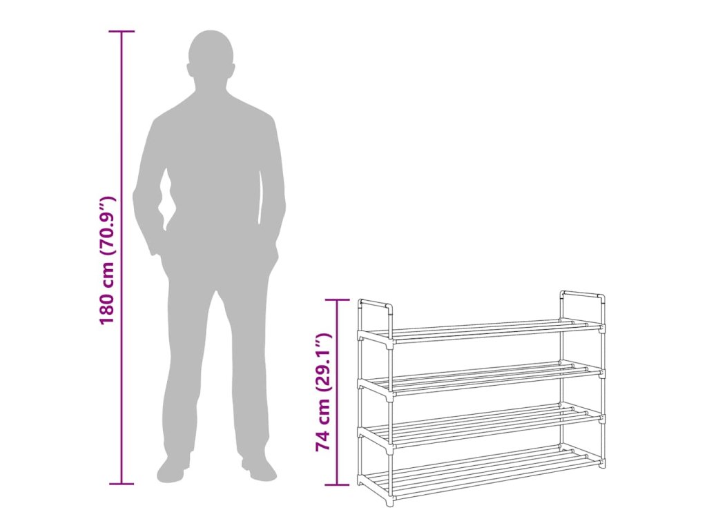 Disponuje lehkým kovovým trubkovým rámem, botník se dá tedy snadno přesouvat, zároveň je ale také velmi odolný. Má čtyři prostorné police, které vám poskytnou spoustu prostoru, kam si můžete uložit vaše boty tak, aby vám nepřekážely.