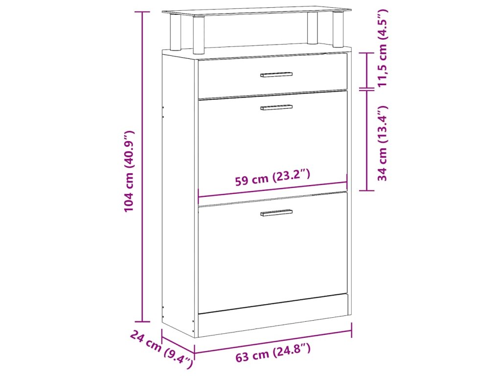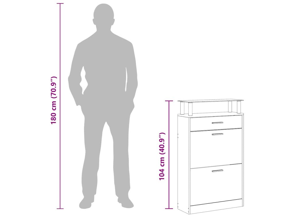 - S 2 velkými přihrádkami na uložení bot, 1 zásuvkou a 1 horní skleněnou policí
