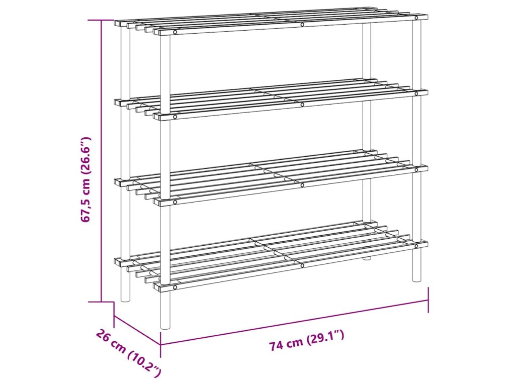 - Rozměry každého regálu na boty: 74 x 26 x 67,5 cm (D x Š x V)