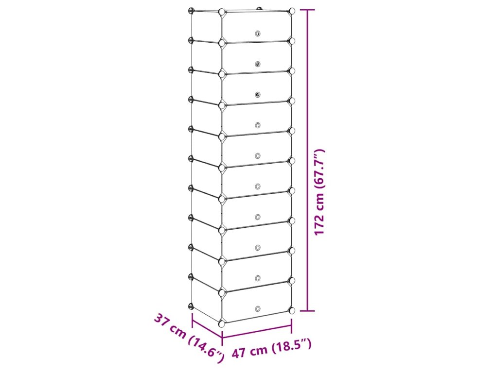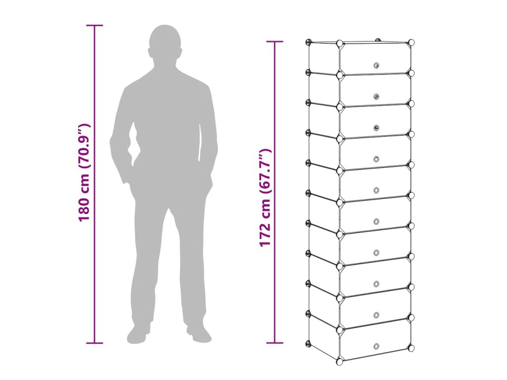 Tento botník je vyroben z vysoce kvalitních plastových panelů, které jsou zasazeny do plastových rámů. Organizér je díky tomu pevný a odolný. Díky plastu se ale zároveň snadno čistí. Celý stojan snadno sestavíte díky plastovým spojům, které jsou součástí balení. Botník je navíc lehoučký, takže se snadno přesouvá.