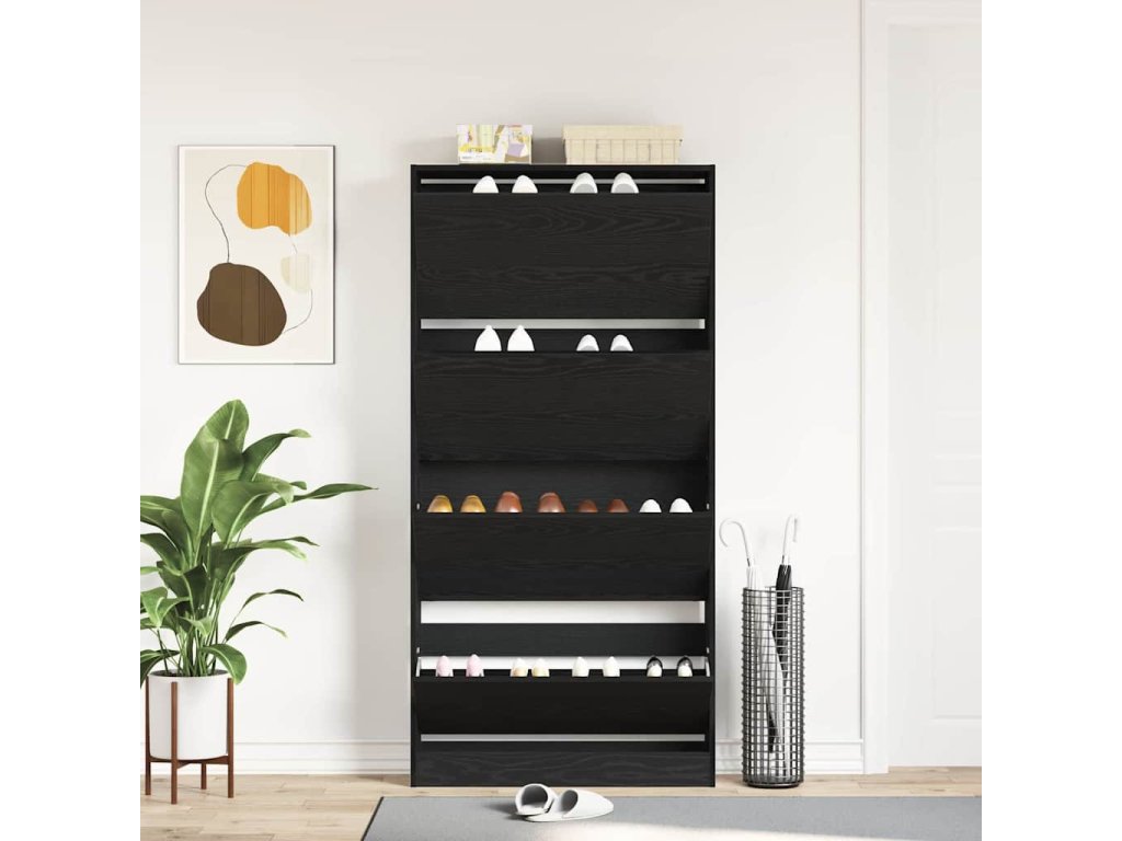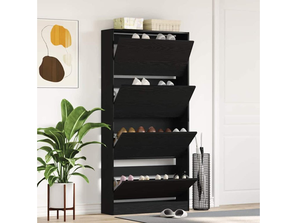 Tato moderní skříň na boty kombinuje funkčnost a design, takže je ideálním kouskem pro jakýkoliv obývák. Díky elegantnímu designu s čistými liniemi skvěle zapadá do moderních interiérů. Je vytvořená pro ukládání a organizaci obuvi, takže si udržíte přehled a pořádek. Konstrukce z inženýrského dřeva poskytuje odolné a vkusné úložiště pro boty, perfektní pro každého, kdo chce vnese do svého domova moderní akcent.