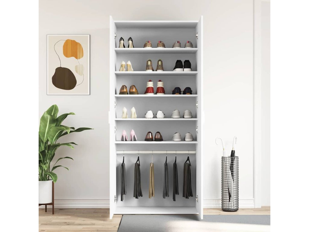 Excellence z kompozitního dřeva tahle skříň na boty je vyrobená z kompozitního dřeva, které spojuje styl s praktickým využitím. Kompozitní dřevo je nejsou o prasknutí a výkyvy teploty, takže ti vydrží a zároveň vypadá dobře. Vylepšené dveře na pantech skříň má dveře na pantech, které příjemně fungují a ukryjí tvoje boty, takže tvůj obývák bude vždycky vypadat upraveně. Design pantu ti zaručí snadný přístup k botám, takže budeš mít organizaci na dosah. Funkční moderní úchyty skříň má stylové tyčové úchyty v lesklém stříbrném provedení, které ladí s moderním designem a zajišťují, že se k botám snadněji dostaneš. Praktické úložné možnosti s prostorově úspornými oddíly pro boty, které nabízejí skvělou organizaci a pomáhají předejít nepořádku, je tahle skříň ideální do každého obýváku. Díky tomu tolik uvolňuje místo na podlaze. Údržba je jednoduchá ke snadné údržbě této skříně stačí otírat prach suchým hadříkem pro udržení krásného vzhledu. Vyhýbej se silným čisticím prostředkům pro zajištění dlouhé životnosti.- Barva: Bílá