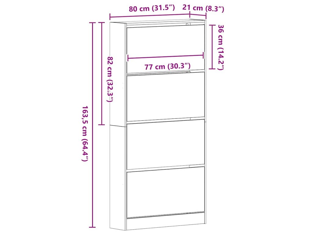 - Celkové rozměry: 80 x 21 x 163,5 cm (D x Š x V)