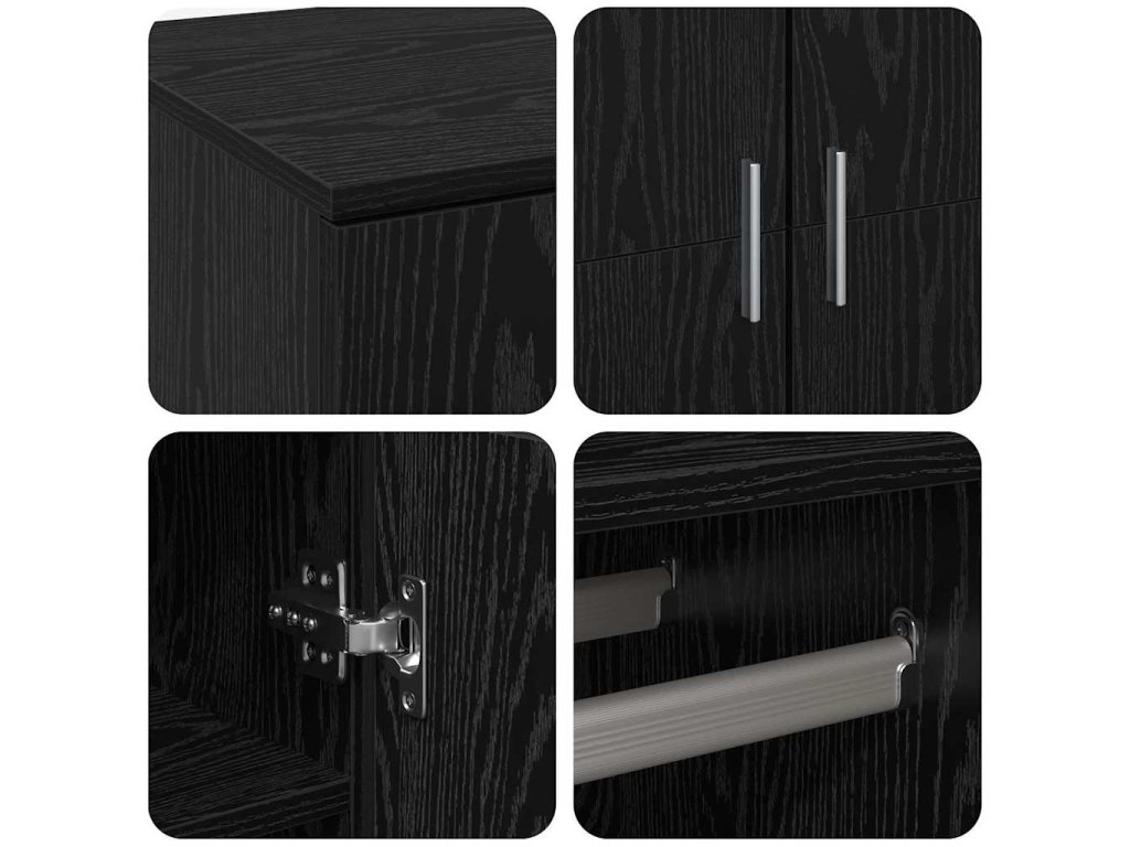 - Součásti: Skříň má otevírací dveře a police, takže můžeš snadno uspořádat různé věci. Dveře ladí s kompozitním dřevem, což dodává celkově hezký vzhled. Za těmito dveřmi najdeš spoustu polic, takže organizace bude brnkačka.