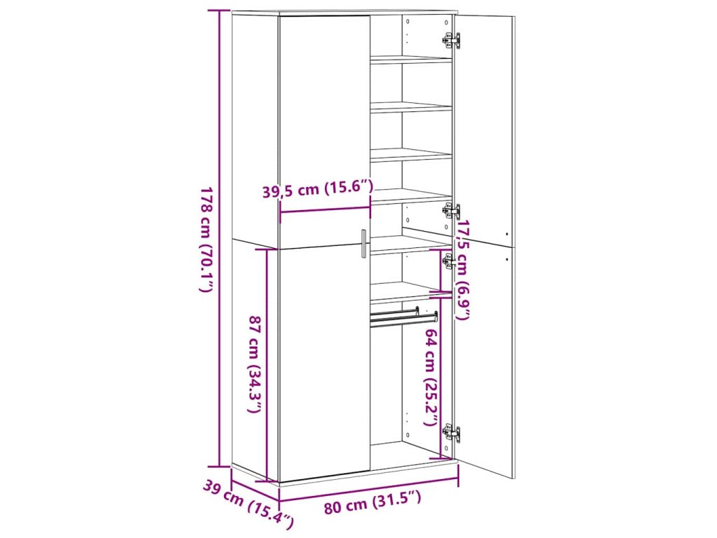 - Celkové rozměry: 80 x 39 x 178 cm (D x Š x V)
