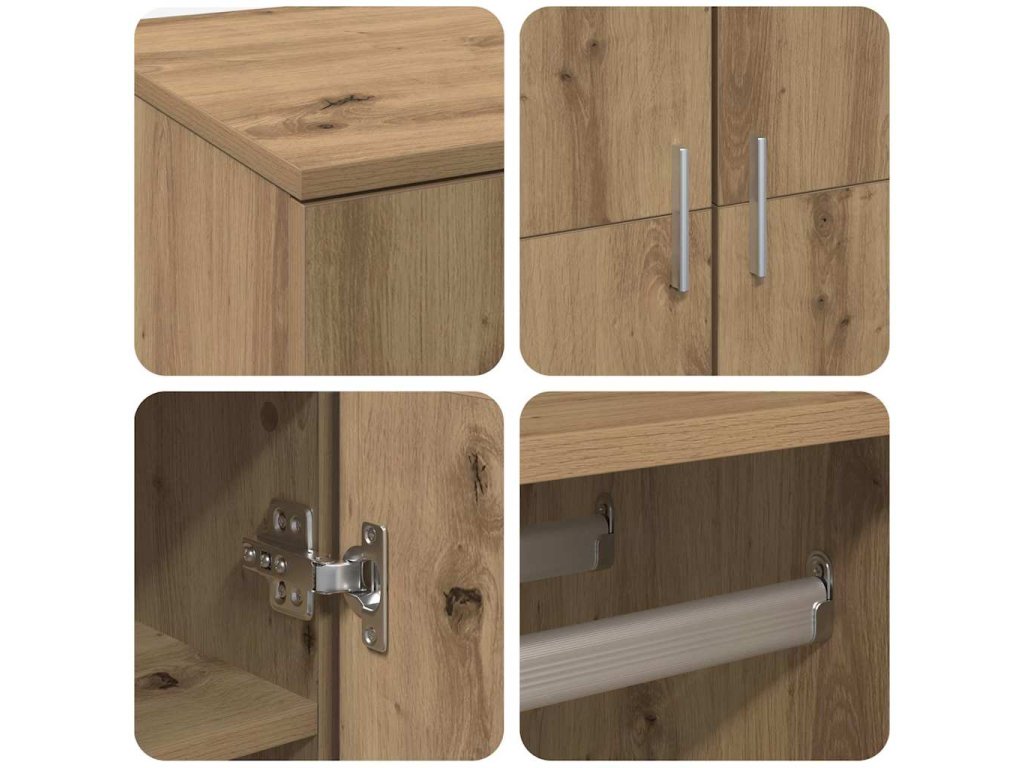 - Materiály: Tato skříň je většinou z kompozitního dřeva – je odolná a vypadá skvěle. Kompozitní dřevo je známé svou pevností a hladkým povrchem, který vydrží roky. Silná konstrukce zajišťuje, že ji bez problému používáš každý den.