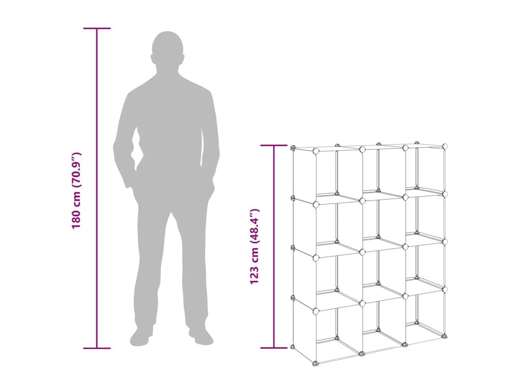 - Dostatek úložného prostoru: Tento plastový regál obsahuje 12 modulárních kostek. Úložný prostor vám umožní přehledně si uspořádat své věci.