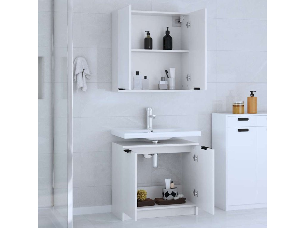 2dílná sada koupelnových skříněk bílá kompozitní dřevo 3115860