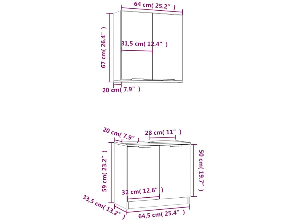 - Rozměry spodní skříňky: 64,5 x 33,5 x 59 cm (D x Š x V)