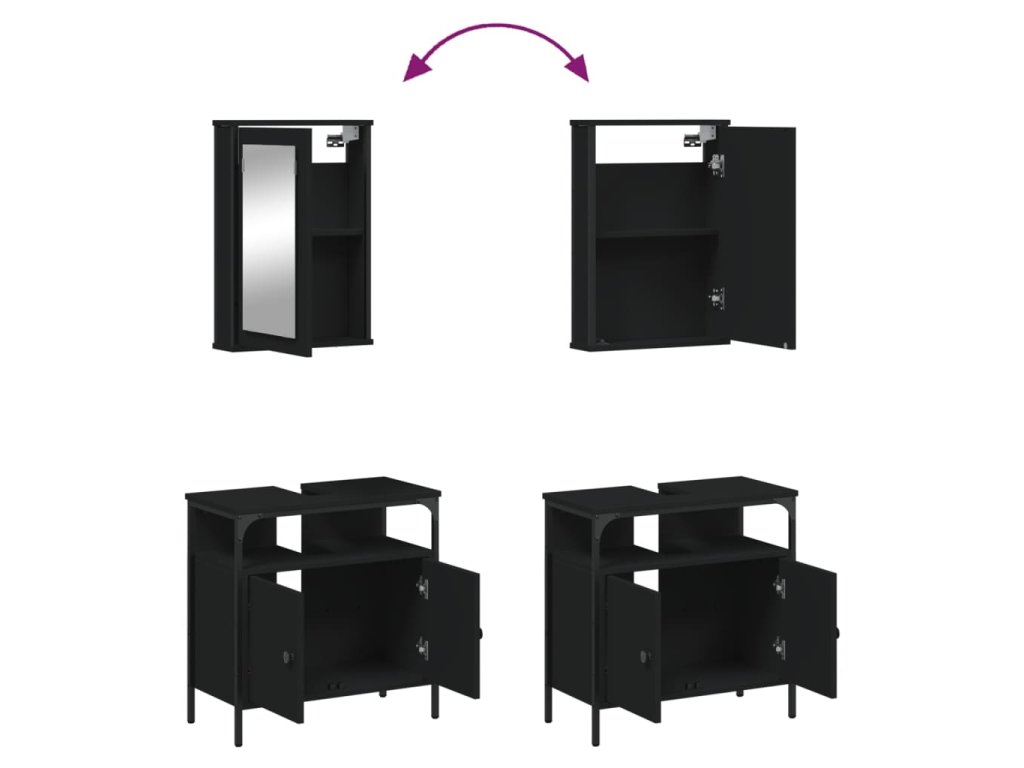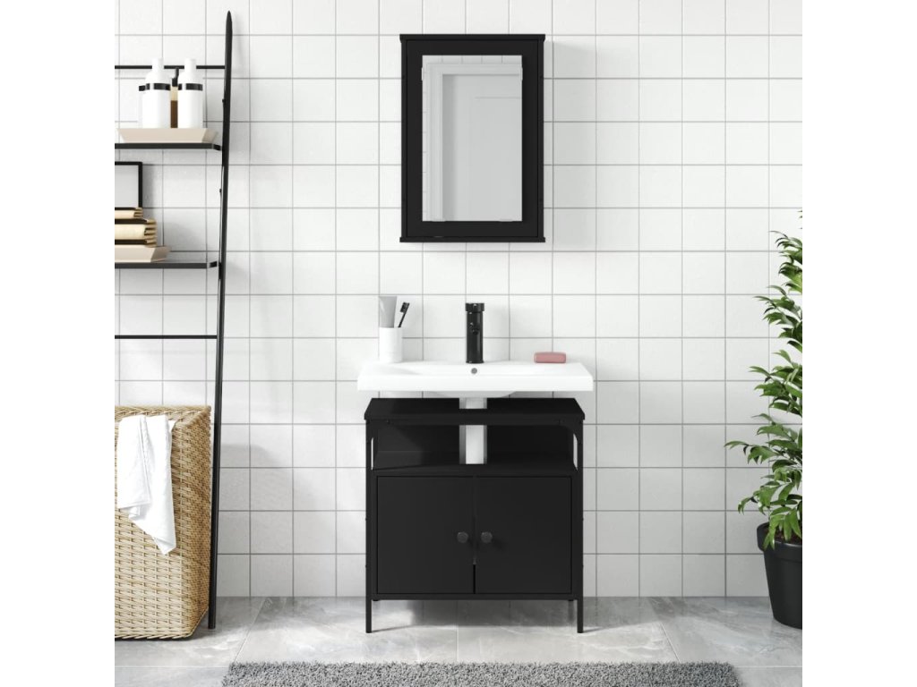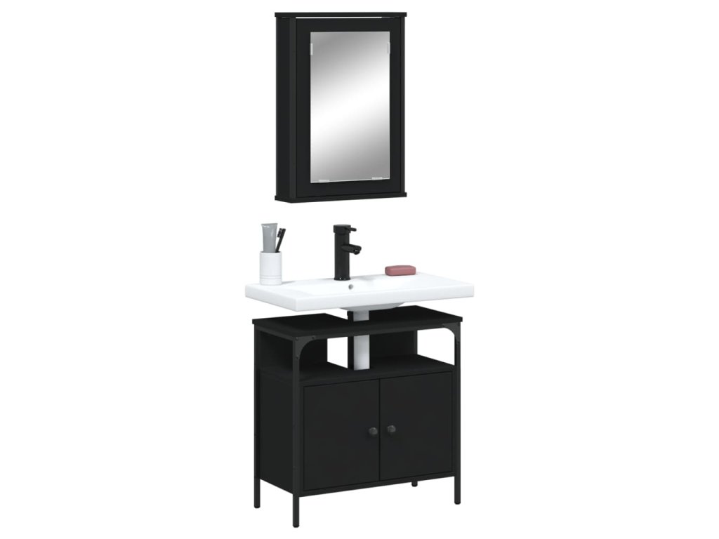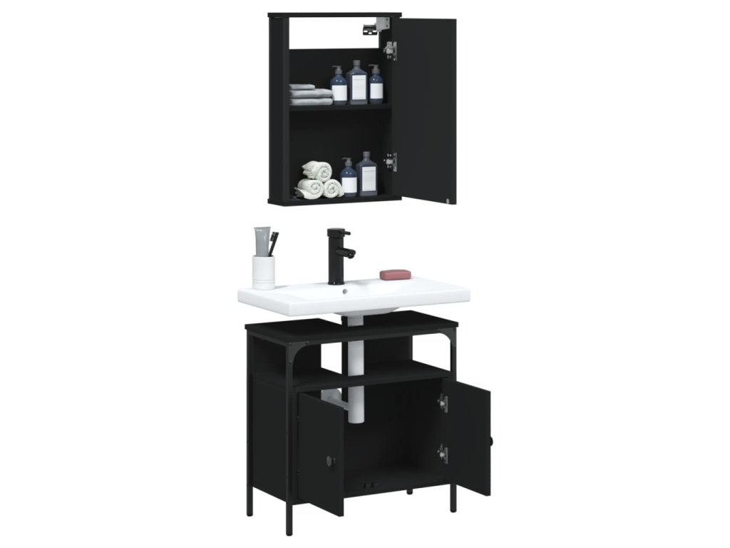 2dílný set koupelnového nábytku černý kompozitní dřevo 3214775