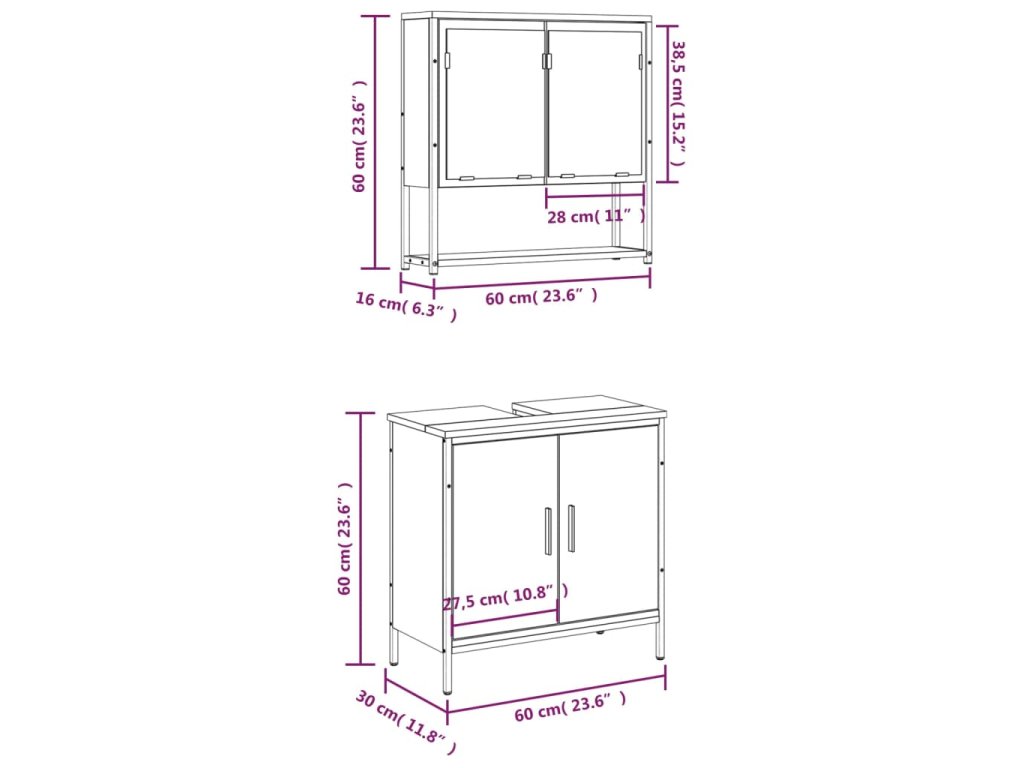 2dílný set koupelnového nábytku hnědý dub kompozitní dřevo 3214664